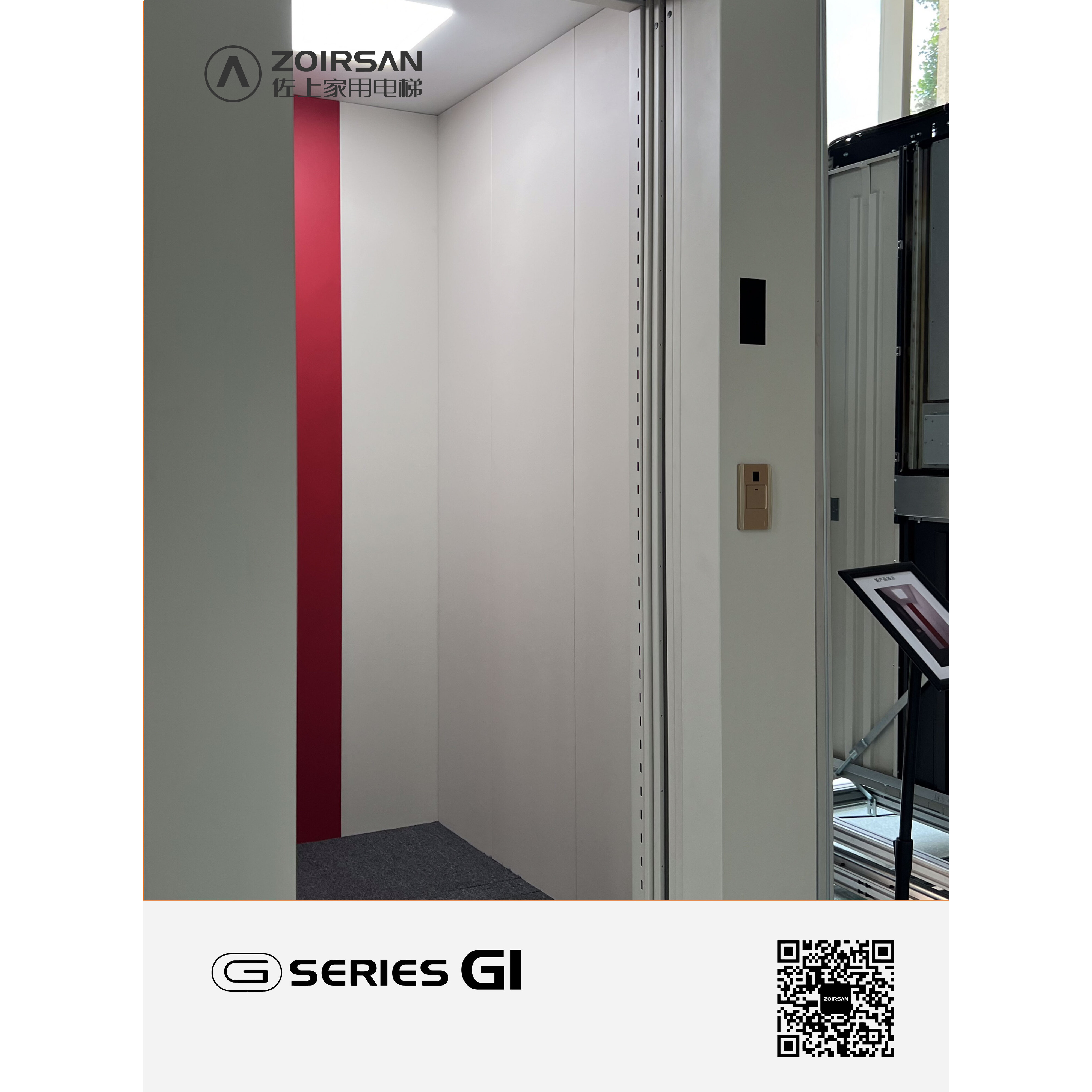 ZOIRSAN入门基础款电梯,性价比高,极简的设计,可百搭家中各类装修风格。符合国家政策导向,生产周期快,适用于以适老化为基础要求的家庭,以及开发商批量采购。满足老年人基本生活需求,舒适静音。